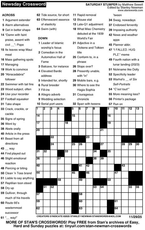 Crossword for 11/29/2025