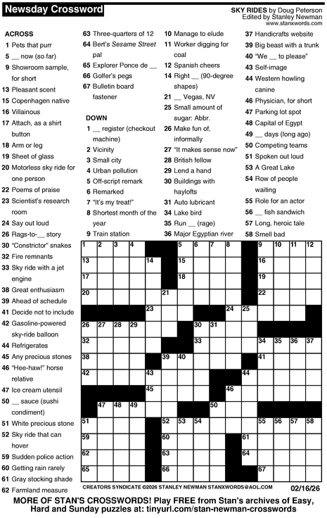 Crossword for 2/16/2026