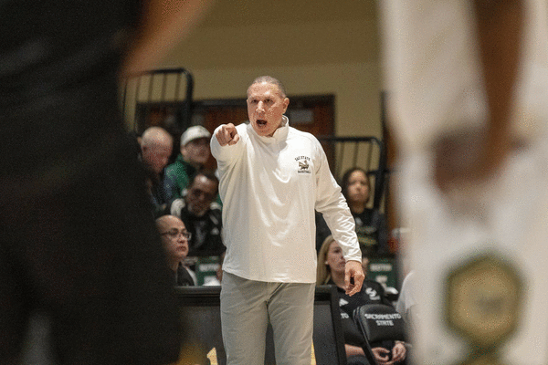 Bibby sought out his mother, Virginia Bibby, before the opening tip of Sac State’s home opener on Nov. 4. She eased down stands and gave her son a warm embrace behind the team bench.